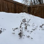 I have mulch around several of my plants, and thanks to the blizzard a couple of weeks ago, I’ve accumulated enough snow in my backyard to help protect them this winter. Here’s hoping your gardens are well insulated, too. Happy gardening!