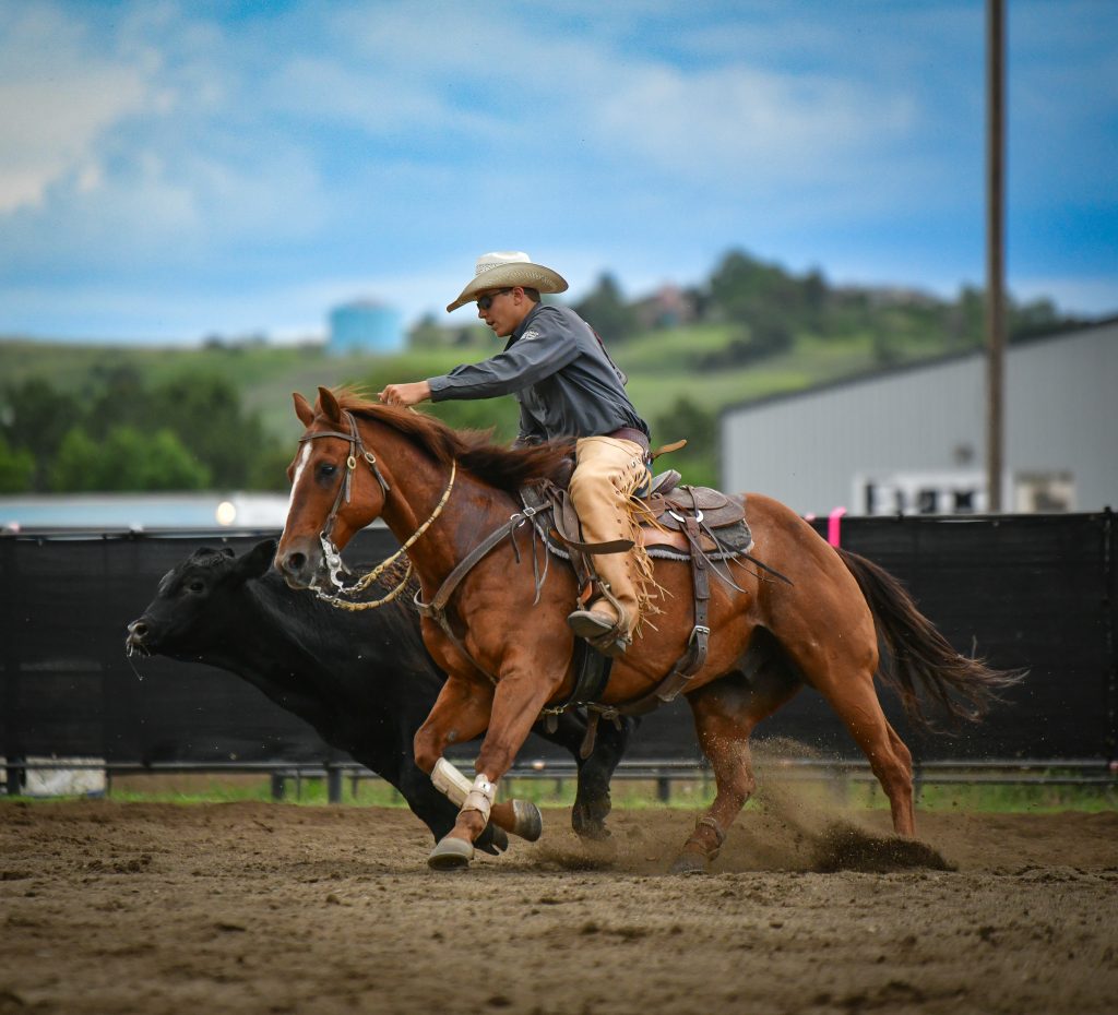 Hammer excels in the reined cow horse, which is what Dalton rides him for in the S.D. High School Rodeo Association. The horse is also his backup horse for the cutting, and with Jackson, Dalton’s older brother, won the cutting once and was reserve champion in the reined cow horse twice at the S.D. State High School Finals.