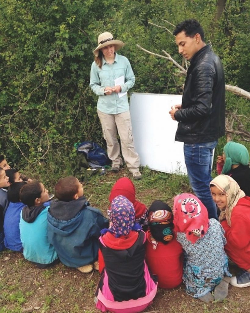 Natalie Sturm leads a class for elementary school students during a 2017 research trip to Morocco.