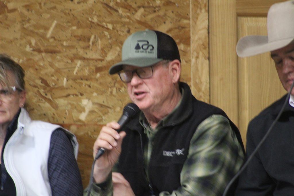 Lot 50; Pine Coulee Saga M698 sold for $23,000 to Cody Staiger, Hebron, ND; Birth: 5/15/24; Sire: Beartooth Saga 059 x Coleman Bravo 6313; Dam: CAR Miss Julie 1142 x Pine Coulee Capitalist F339