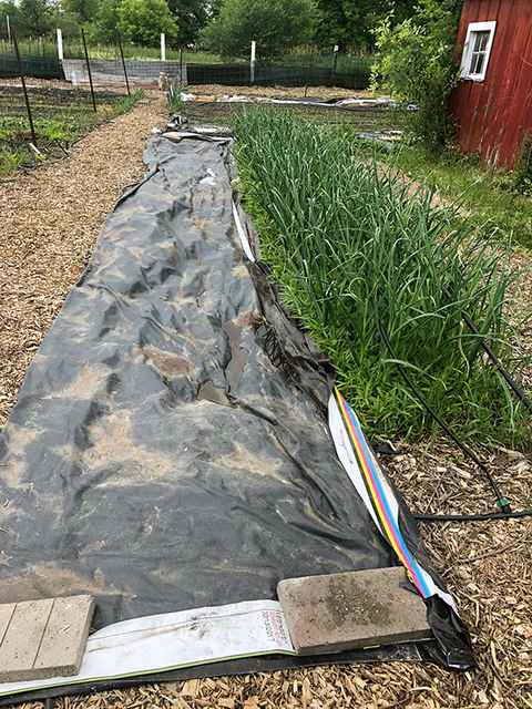 I plan to put the tarps down this fall and take them up in the spring. Then I can rake away the dead weed foliage, add a layer of compost, and I’ll have my new no-till area to plant.