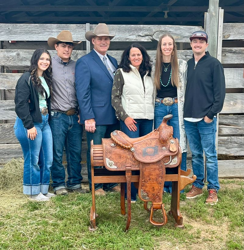 In 2015, Treg went straight from the 4-H Finals in Ft. Pierre, South Dakota to Valentine, Nebraska to help his cousin, Brian Fulton, and his family prepare for a horse sale, while Brian was battling cancer. According to Treg, it was “one of those times in your life where you need to go help someone, no matter what you have going on in your life.” This kind of selflessness is exactly what makes the Cowans the perfect recipients for the Heartland Saddle. According to their daughter, Sydney, “They’ve devoted so much time and energy to their community and the South Dakota rodeo family,” and she is “so proud of all they do to support and uplift the people around them.”